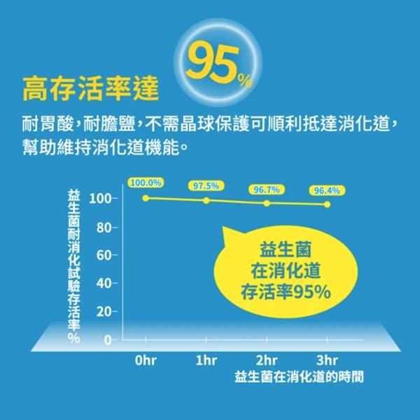 消化道存活率高达95%,耐胃酸、耐胆盐,真正抵达肠胃发挥功效
